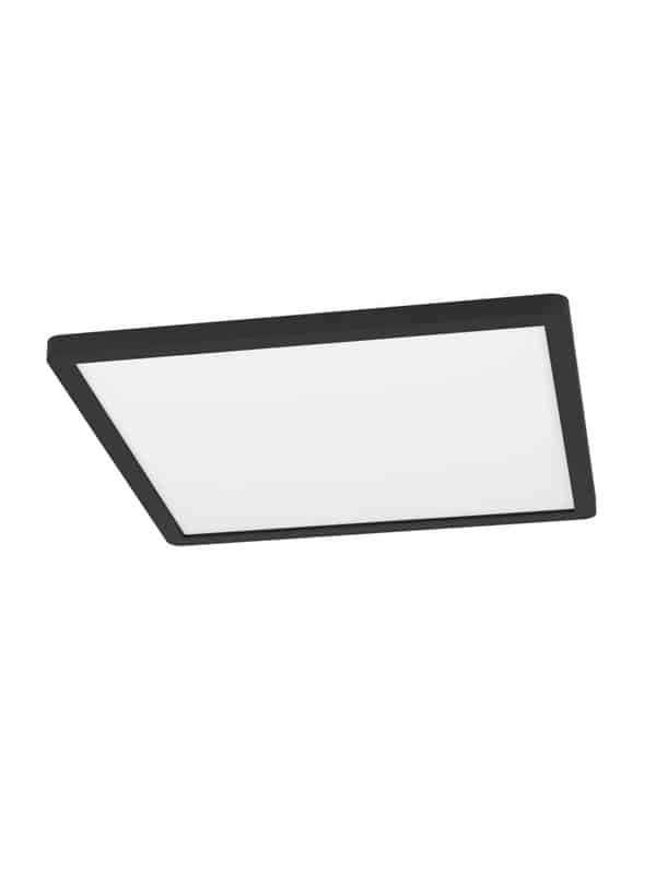 EGLO CONNECT-Z ROVITO-Z loftlampe i sort med indirekte belysning bag rammen. Højde 2,5 cm, længde 29,5 cm, bredde 29,5 cm. LED, 14,6 watt, 1700 lumen, 2700-6500 kelvin, RGB + Tunable white. Lampens primære belysning er tunable white, mens den indirekte be